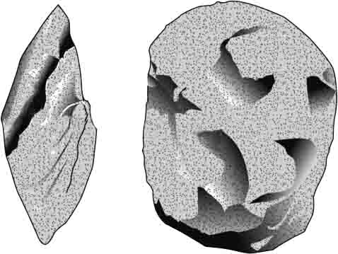 打製石器(左)・磨製石器(右)