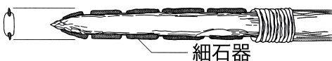 木の柄や骨に数本埋め込んで組合せ、投げ槍などに使用。ロシアのバイカル湖周辺から伝播