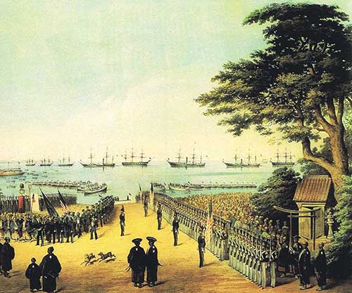 1846年、アメリカ東インド艦隊司令官ビッドルが、浦賀に来航して国交・通商を求めました。