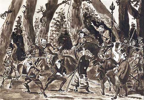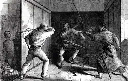 島津久光一行の江戸からの帰途、横浜近郊でイギリス人が行列を横切り、久光の従者に殺傷された事件1863年、事件の報復として薩摩藩・イギリス間に薩英戦争が勃発