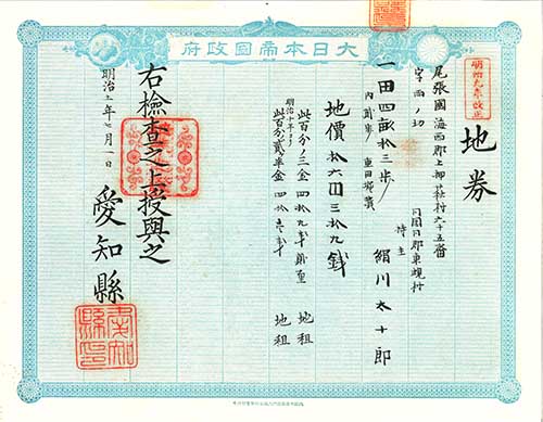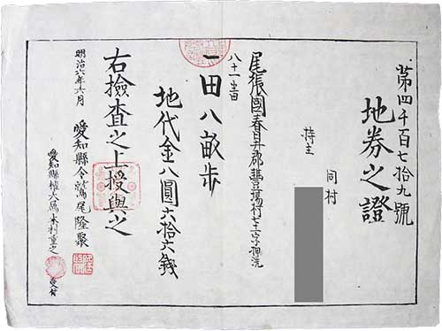 公布と同時に、以前の地券に代えて、地価の記載された改正地券を発行