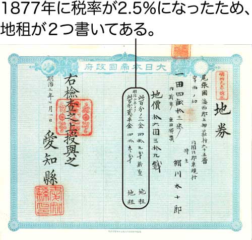 結果、1877年に税率を地価の2.5%に引き下げました。
