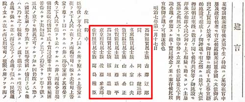 1874年、板垣退助は郷里の土佐で