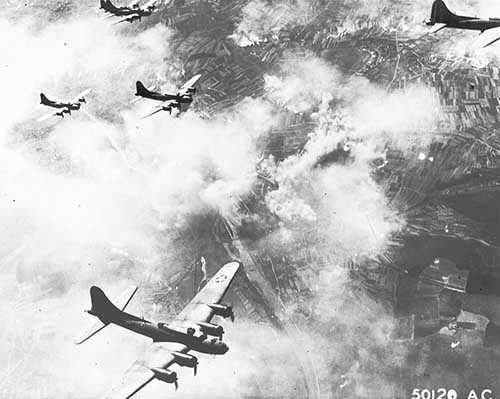 ドイツ上空を飛ぶ米国の爆撃機B-17