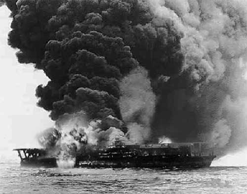 炎上する空母「飛龍」