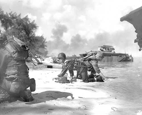 サイパン島に上陸する米兵