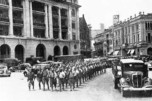 シンガポール市街を行進する日本軍