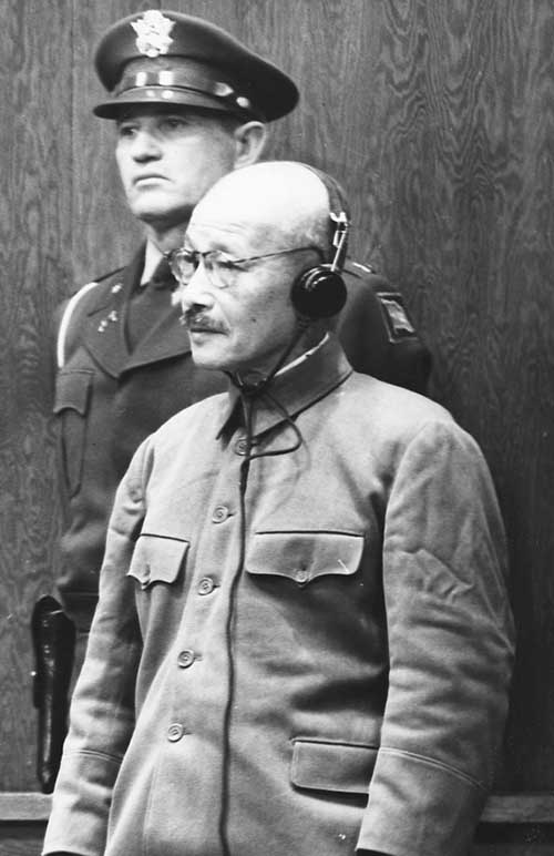 東条英機元首相ら戦争指導者が極東国際軍事裁判(東京裁判)にかけられ、「平和に対する罪(A級)」で有罪となりました。