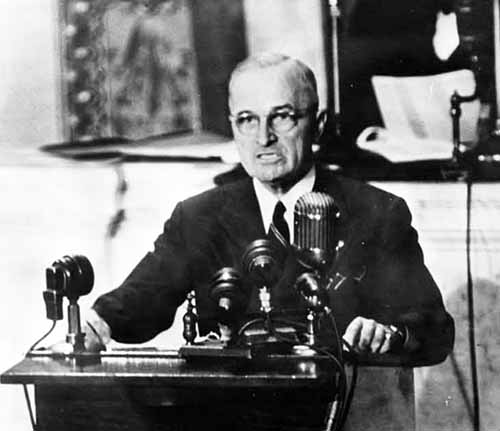 1947年、米大統領トルーマンが、反ソ・反共の徹底によるソ連「封じ込め」政策の宣言トルーマン=ドクトリンを出しました。