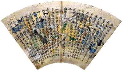 扇形の紙に、京の民衆の生活を描いた装飾経