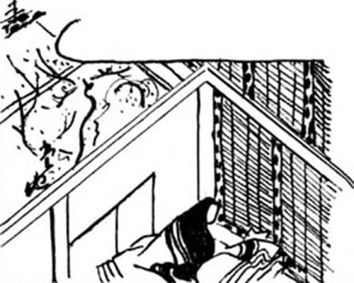 大和絵の手法は、例えば「吹抜屋台ふきぬきやたい」「引目鉤鼻」