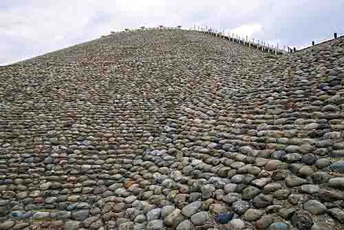 古墳斜面に敷かれた葺石(五色台古墳)
