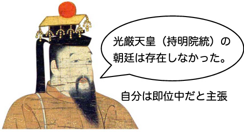 後醍醐天皇は光厳天皇を否定し、自分が即位中だと主張しました。