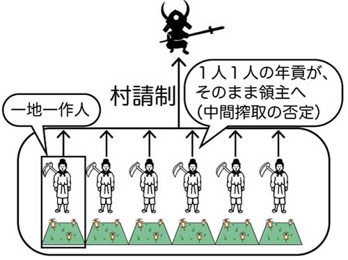 本百姓の①~⑤の負担は、個人ではなく村全体で一括して負担しました。